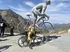 Dyll Davies with Le Géant sculpture at the top of the Col du Tourmalet.