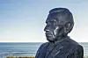 A statue of Charles Norman Shay overlooks Omaha beach, where he was mong the first US troops to land on D-Day