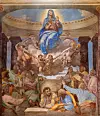 The auctioned artwork (left) was a preparatory drawing for the The Assumption of the Virgin fresco in Rome’s Trinità dei Monti (right)@CourtesyMillon, Renata Sedmakova / Shutterstock