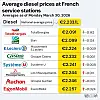 The graphic below shows the price of diesel on Monday (March 30), according to government data. This is in comparison to carbu.com, which uses crowdsourced information, hence the discrepancy in pricing.