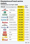 Government data suggests that the average diesel price across France is now €2.250 per litre, increasing by around 6c per litre in two days.